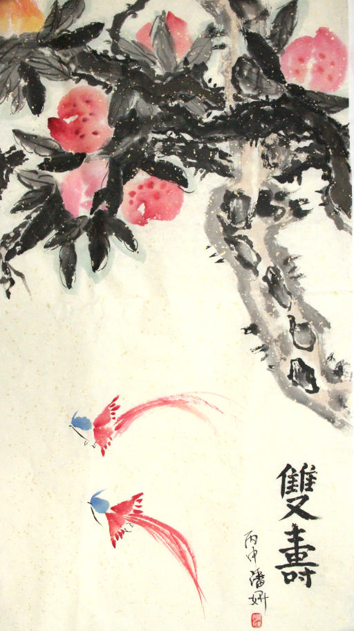 Paradise Flycatchers and Peach Tree by YAN